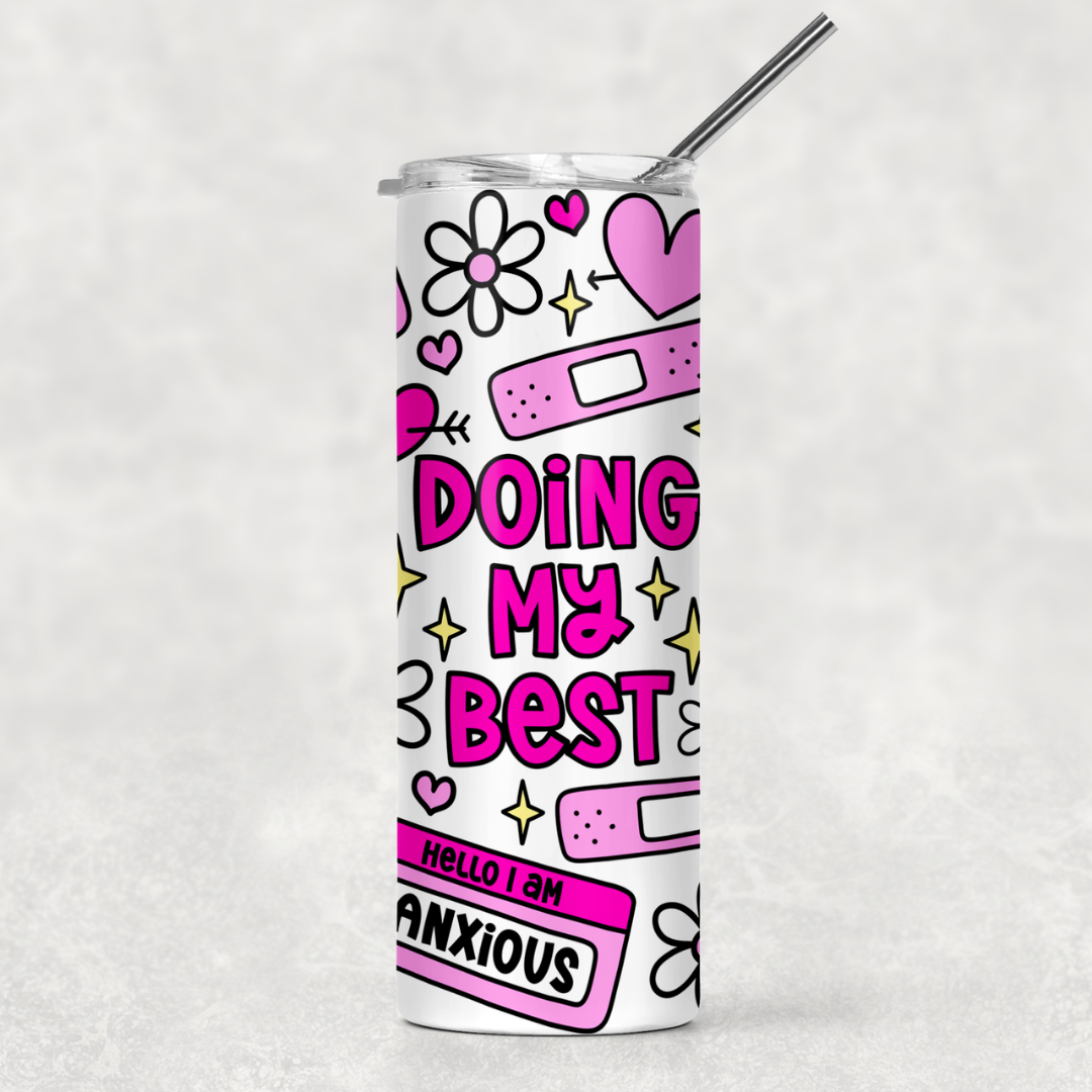 Doing My Best Cold Cup offers thoughtful comfort for the socially anxious, reminding you that it’s okay to not be okay. Equipped with a sliding lid, it allows easy sipping or slurping with a straw while securely covering the cup. Engineered to maintain both hot and cold temperatures, it delivers reliable performance without compromising on style. This cup balances functionality and meaningful design for everyday use.